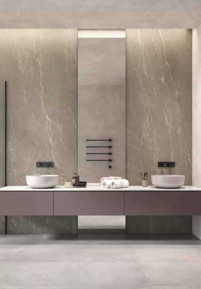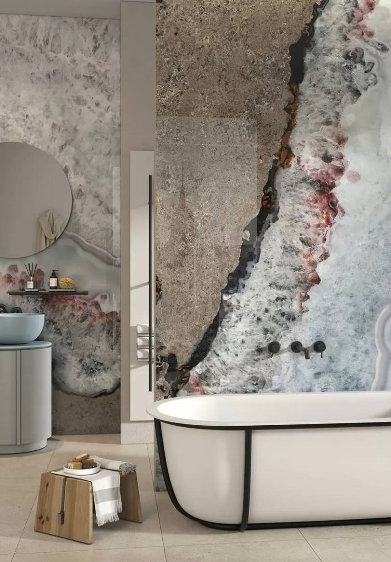 Lightweight aluminum structure with high-resolution surface finishes that replicate marble, stone, fabrics, and other natural or artistic materials.