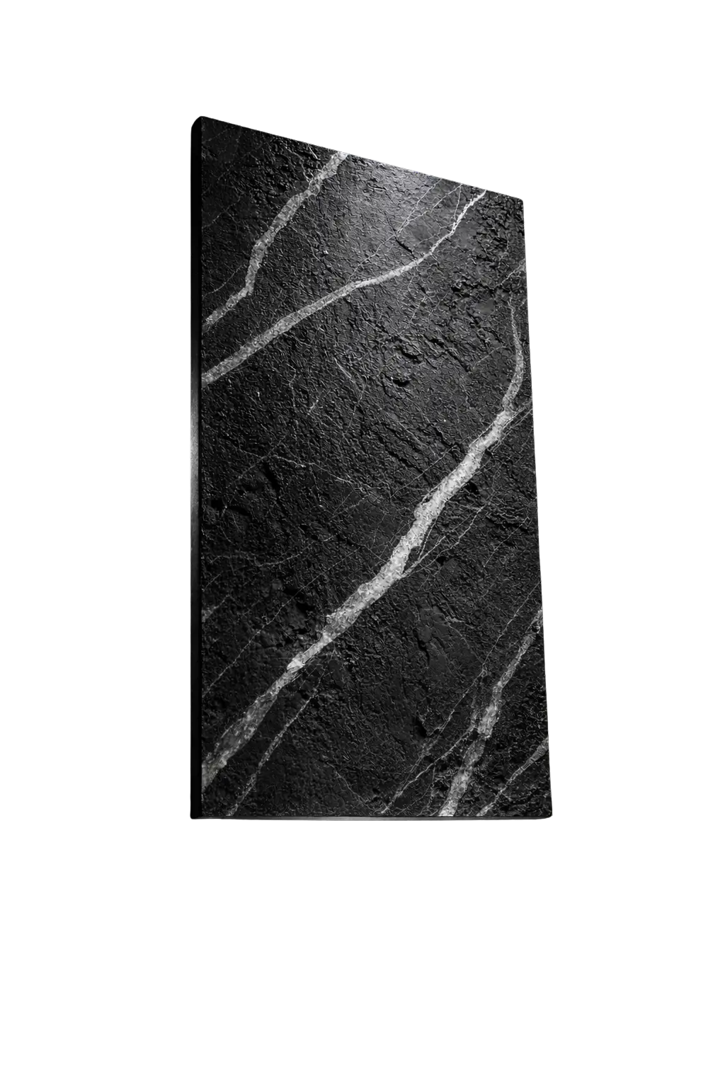 Noirblanc is a premium soft quartzite, characterized by a dramatic black background with contrasting white, light, and grey streaks. When paired with the RivenPlus finish, this stone takes on a specific tactile and visual aesthetic. Launch the online Visualizer